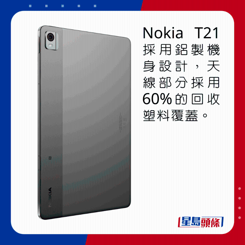 Nokia T21沿用10.36吋2K IPS熒幕,邊框比起T20略為收窄。