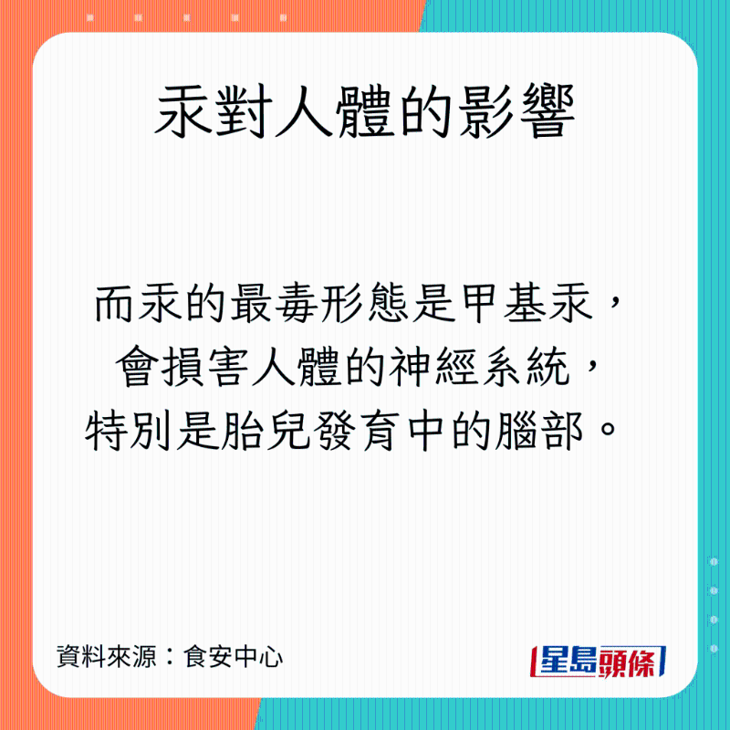 李柏賢醫(yī)生表示,長期攝取汞(水銀)會(huì)嚴(yán)重影響大腦及神經(jīng)系統(tǒng)發(fā)育,出現(xiàn)智力及記憶力受損等問題,對(duì)免疫系統(tǒng)、肺、腎、皮膚和眼睛亦有負(fù)面影響。