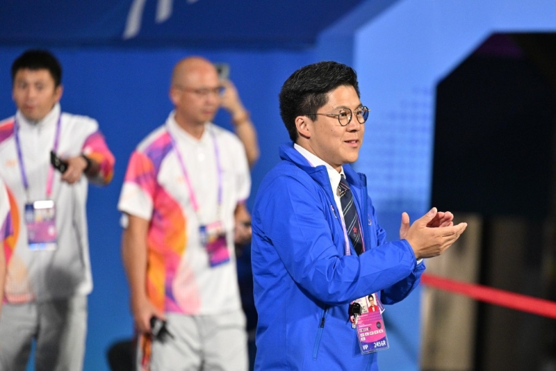 香港亞運代表團團長霍啟剛現(xiàn)場支持。