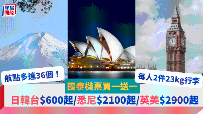平時長途機(jī)票要價不菲,用里數(shù)換取又非?!叭獬啵ㄐ奶郏?,今次國泰機(jī)票買一送一優(yōu)惠,部分旅行社如東瀛游、永安旅游、安達(dá)旅運(yùn)等提供長途機(jī)票優(yōu)惠。 其中以安達(dá)旅運(yùn)的長途航點(diǎn)最多,包括倫敦、巴黎、紐約、洛杉磯、舊金山、悉尼、墨爾本等地,人均低至$2,100起。
