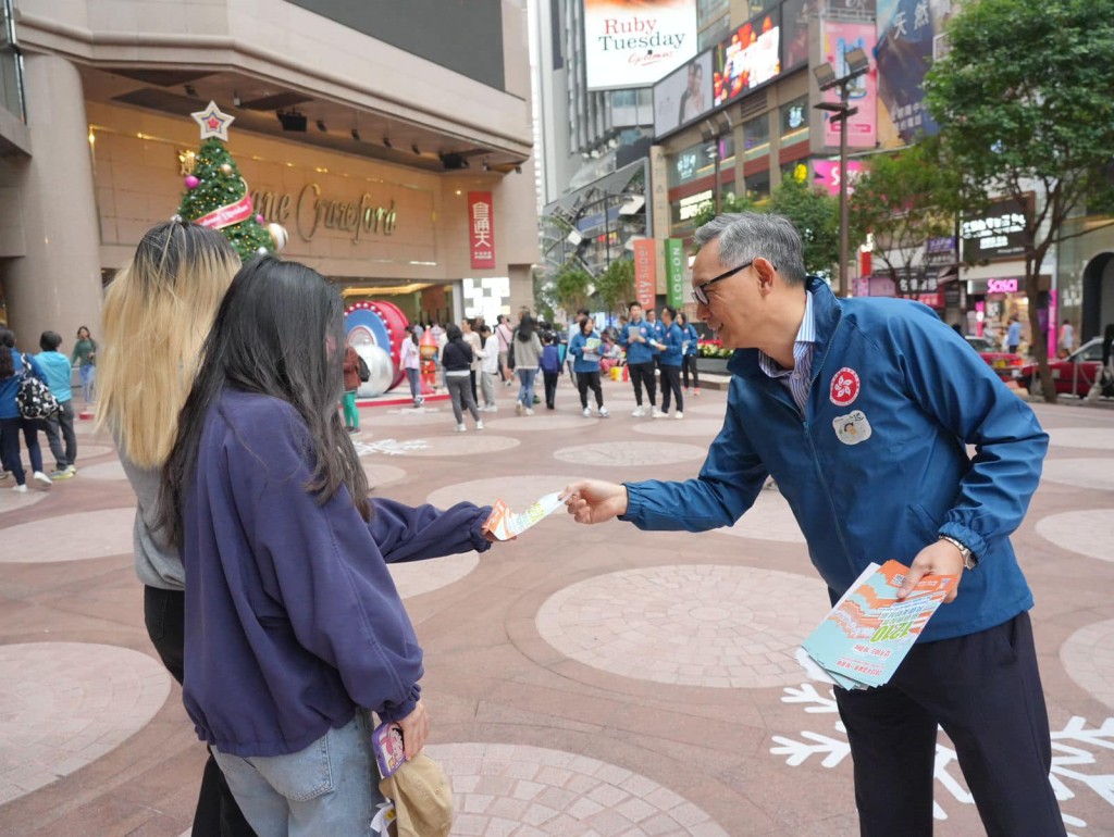 公務(wù)員事務(wù)局推區(qū)選手機(jī)貼圖讓巿民“撳個掣”宣傳,鄧炳強銅鑼灣派傳單吁“幾忙都要揀”