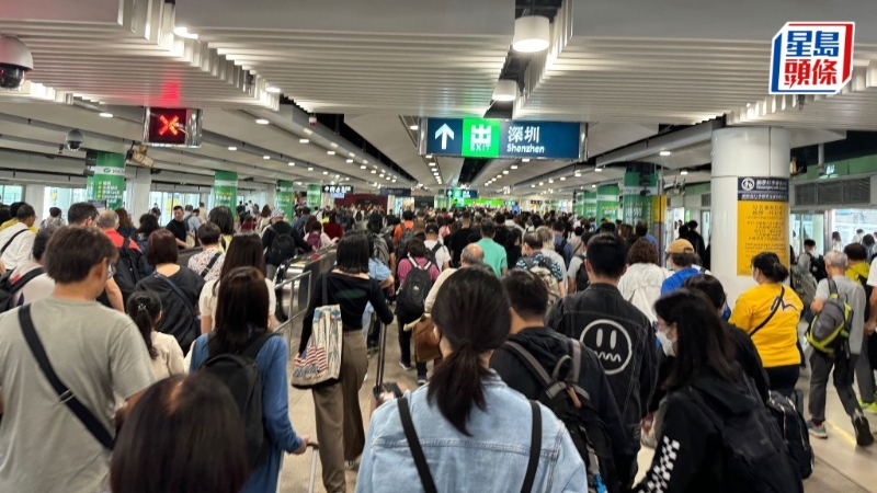 當(dāng)記者到達(dá)上水站時,車箱內(nèi)已迫滿北上的人潮,上水站亦有大量乘客等候上車。而到達(dá)羅湖站時,港鐵更宣布由于乘客眾多,實施人潮管制,等候約5分鐘才獲放行。