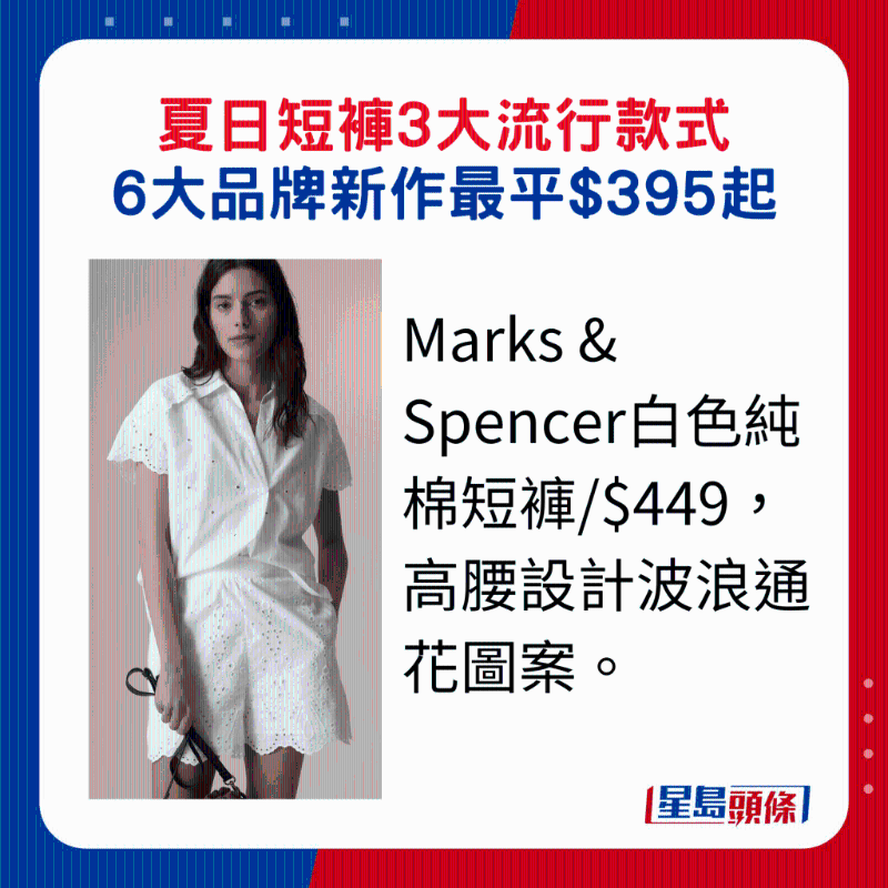 短褲穿搭可凸顯雙腿的修長線條,好像BLACKPINK成員Lisa就以超短牛仔熱褲配搭白色短身上衣及長靴,營造極佳的身形比例,更顯型格。 想為造型加分兼且修飾雙腿,不妨挑選一些飾以精致細(xì)節(jié)的款式,如Maje新推的Denim系列便以水鉆及珍珠作裝飾,其中牛仔短褲的褲邊綴上水鉆流穗,華麗之余,走動時也倍添動感。 此外,Marks & Spencer今季亦有推出工裝短褲及亞麻混紡高腰短褲等,當(dāng)中亦有以Sport Shorts為藍(lán)本設(shè)計的款式,飾以復(fù)古藍(lán)色花卉圖案,又或以通孔勾織圖案配搭波浪褲邊,夏日休閑造型必備。
