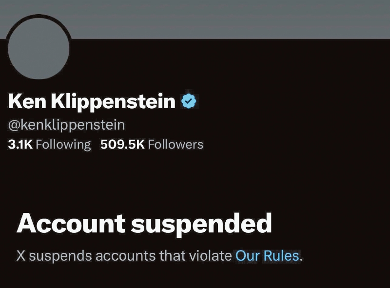 ▲克里彭斯坦公布文件后,X平臺暫停其帳戶,并封鎖分享其帖子的鏈接。 X平臺圖片