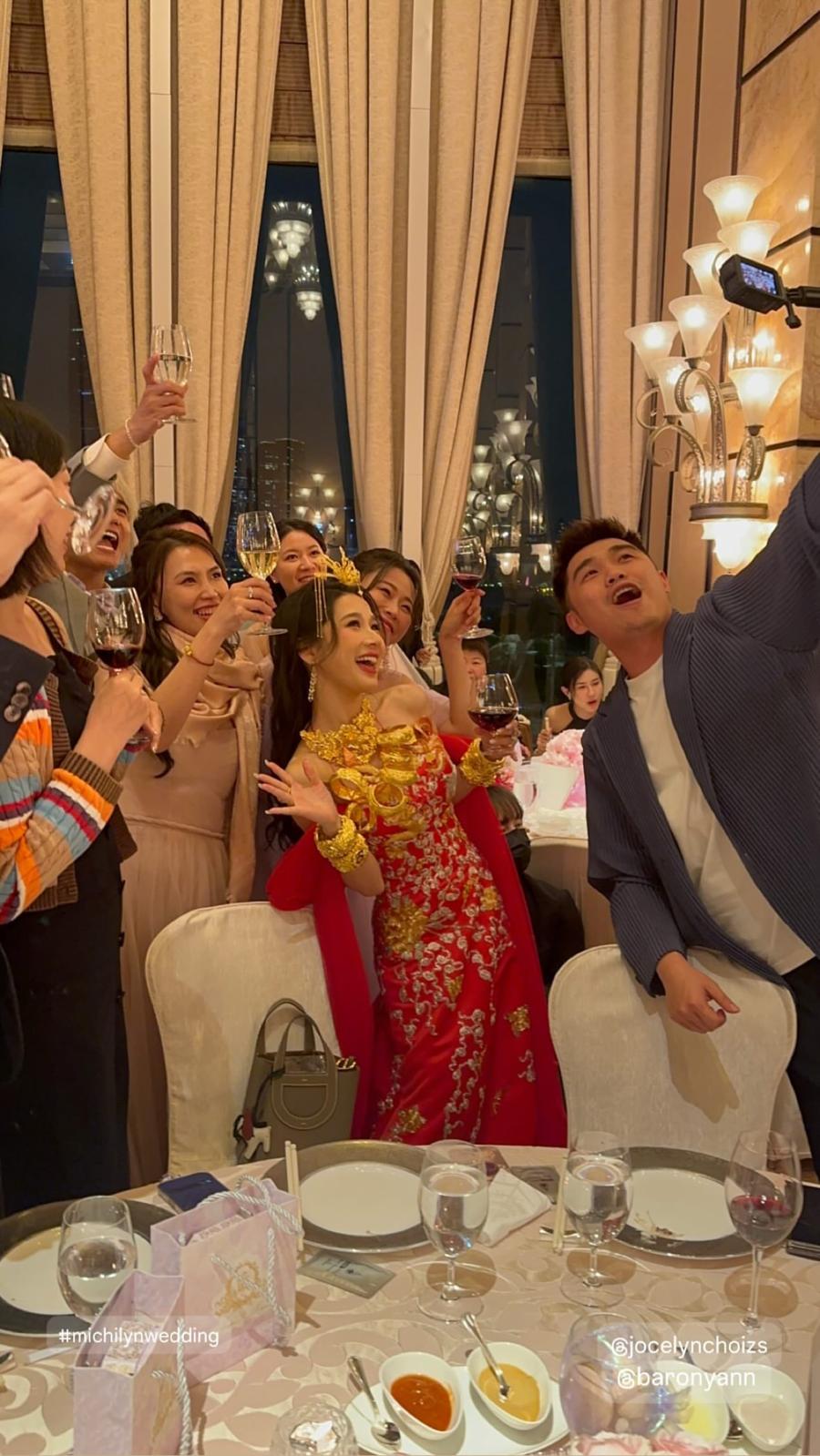 成為人妻后,蔡頌思在IG連環(huán)貼上婚禮當(dāng)日的場(chǎng)面,今日貼上一套中式禮服的相片并說:“據(jù)說我是史上最貪心的新娘,破了酒店記錄,一天換7條裙子,這些造型都沒post完。不過我想票選最高的就是這一條中式禮服,感謝@viviennetam為我打造世界上獨(dú)一無二的這條中式禮服,老公穿上傳統(tǒng)日式和服,應(yīng)該是史無前例的配搭。感謝諸位,特意前來見證和慶祝我們的結(jié)婚,感謝你們使得我人生中最重要的日子如此難忘和圓滿?!?/p>