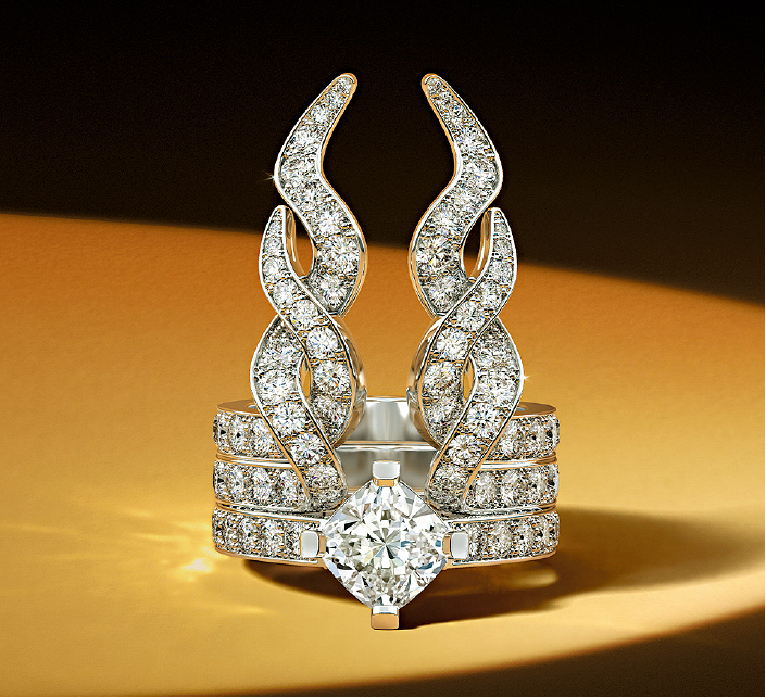 ▲Individuality嵌套式指環(huán),可將中間部分鑲嵌單顆3.09卡方形切割鉆石的指環(huán)分拆出來佩戴,配合鉆石與黑漆組成的斑馬紋理,別具氣勢(shì)。