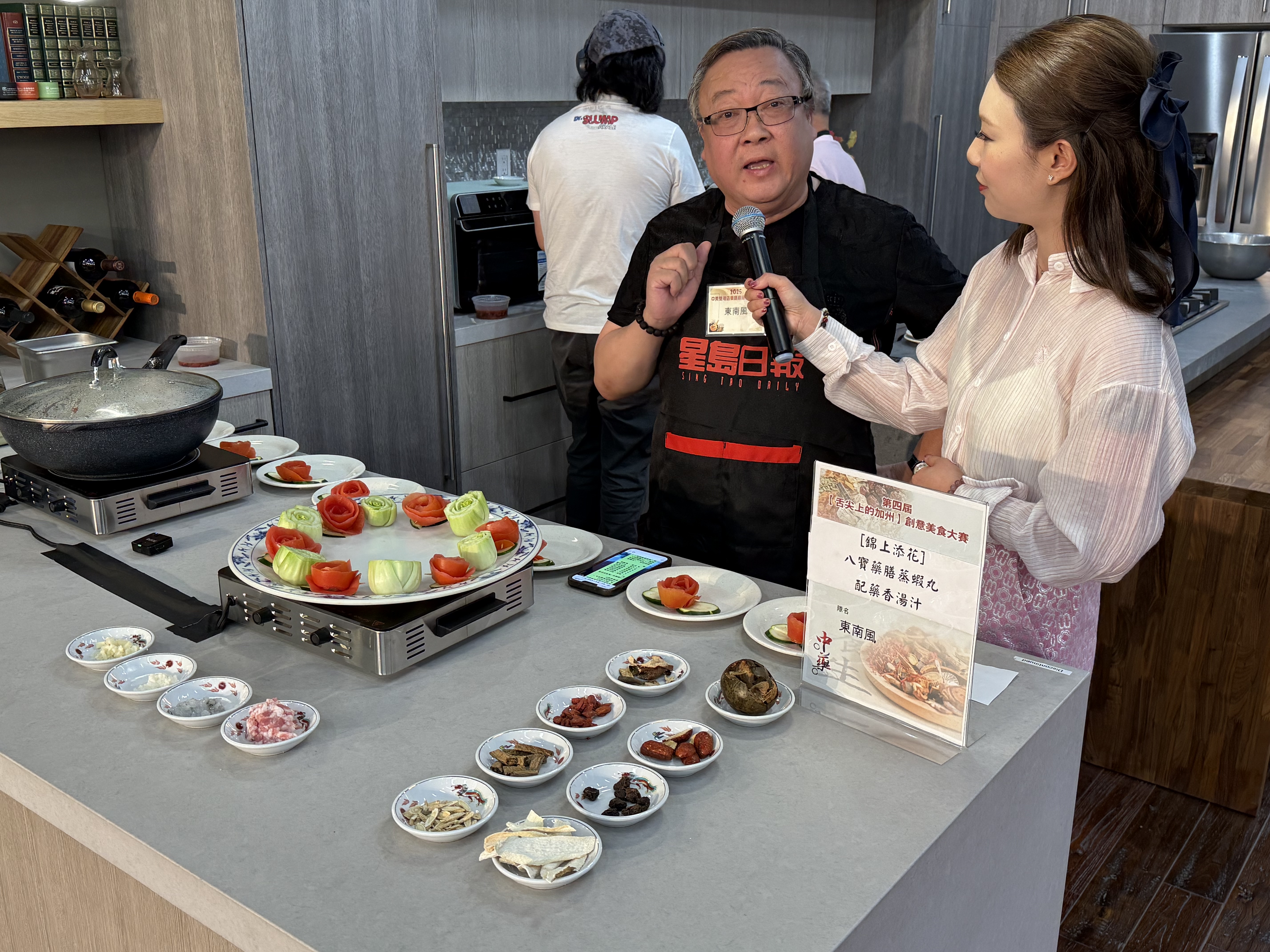 ▲“錦上添花”——東南風(fēng)隊(duì)以枸杞入饌,制作八寶藥膳蒸蝦丸,香氣四溢。記者陳程威攝