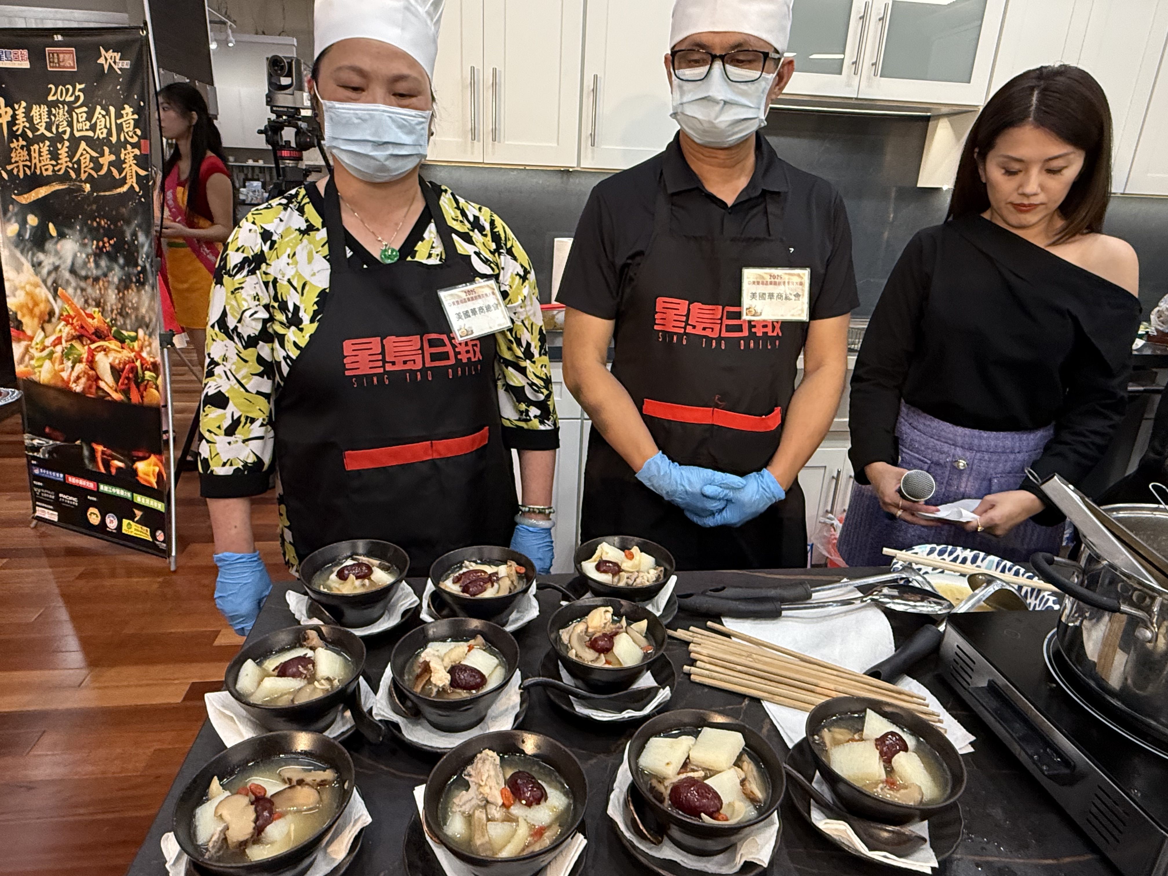 由星島日?qǐng)?bào)、星電視及美國(guó)中藥聯(lián)商會(huì)主辦的2025中美雙灣區(qū)創(chuàng)意藥膳美食大賽之舊金山灣區(qū)初賽,近日在舊金山成功舉行,比賽現(xiàn)場(chǎng)藥香與美食香氣四溢,氛圍熱烈。初賽決出6支晉級(jí)隊(duì)伍,將奔赴廣州參加10月18日~19日舉行的中美雙灣區(qū)藥膳大賽決賽。