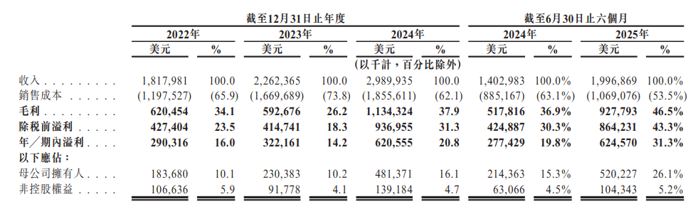 財務(wù)方面,公司絕大部分的收入來自黃金銷售。公司的其他收入主要包括銷售白銀及銅等其他有色金屬的收入以及機(jī)械設(shè)備租賃所得租金收入。于2022年、2023年及2024年以及截至2025年6月30日止六個月,公司的收入分別約為18.18億美元、22.62億美元、29.90億美元、19.97億美元;年/期內(nèi)溢利分別約為2.90億美元、3.22億美元、6.21億美元、6.25億美元。