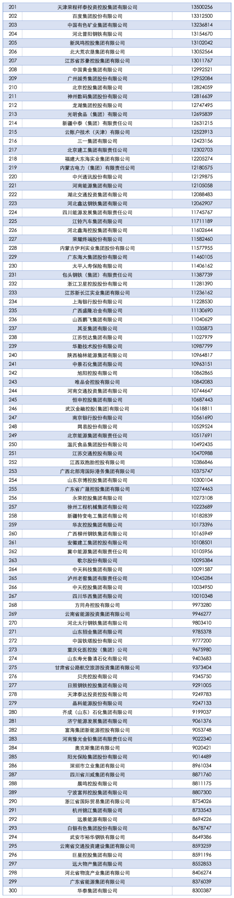 規(guī)??偭勘3衷鲩L。企業(yè)500強營業(yè)收入達(dá)110.15萬億元,較上年500強有所增加。入圍門檻實現(xiàn)23連升,達(dá)479.60億元,提升5.79億元。資產(chǎn)總額為460.85萬億元,增長7.46%。榜單中,千億規(guī)模企業(yè)數(shù)量增至267家,比上年增加45家,有15家企業(yè)的營業(yè)收入超過萬億元。其中,國家電網(wǎng)營業(yè)收入超過3萬億元,即將突破4萬億元;中國石油、中國石化、中國建筑的營業(yè)收入超過2萬億元。