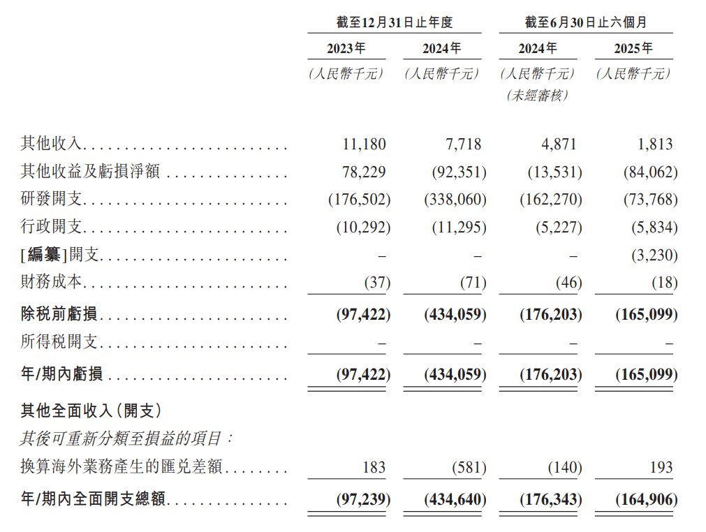 財務方面,公司目前并無產(chǎn)品獲批進行商業(yè)銷售,亦無從產(chǎn)品銷售中產(chǎn)生任何收益。公司于往績記錄期間錄得經(jīng)營虧損。公司于2023年、2024年及截至2025年6月30日止六個月的年度/期間虧損分別約為人民幣9742.2萬元、人民幣4.34億元及人民幣1.65億元。公司的虧損主要來自研發(fā)開支及行政開支。