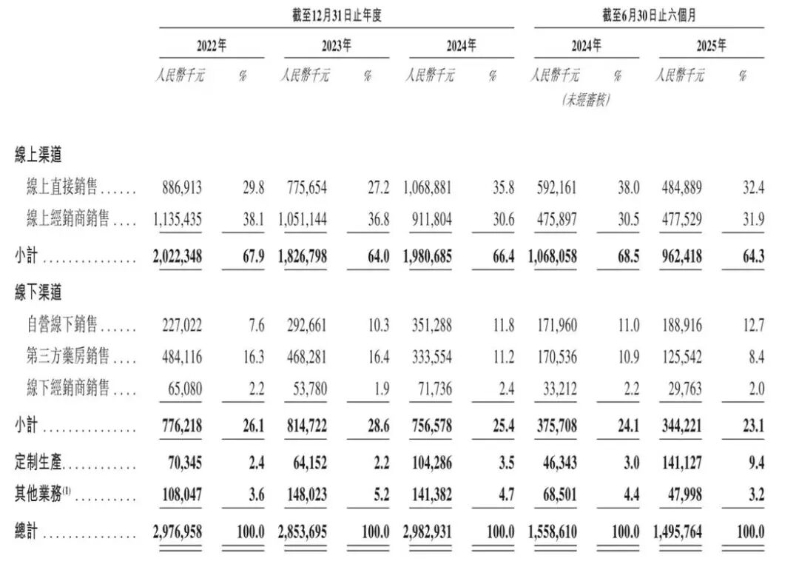 而可孚醫(yī)療的線上銷售又分為經(jīng)銷和直銷。2022年-2025年上半年,公司來自線上經(jīng)銷的收入占比分別為38.1%、36.8%、30.6%、31.9%;來自線上直銷的收入占比分別為29.8%、27.2%、35.8%及32.4%。
