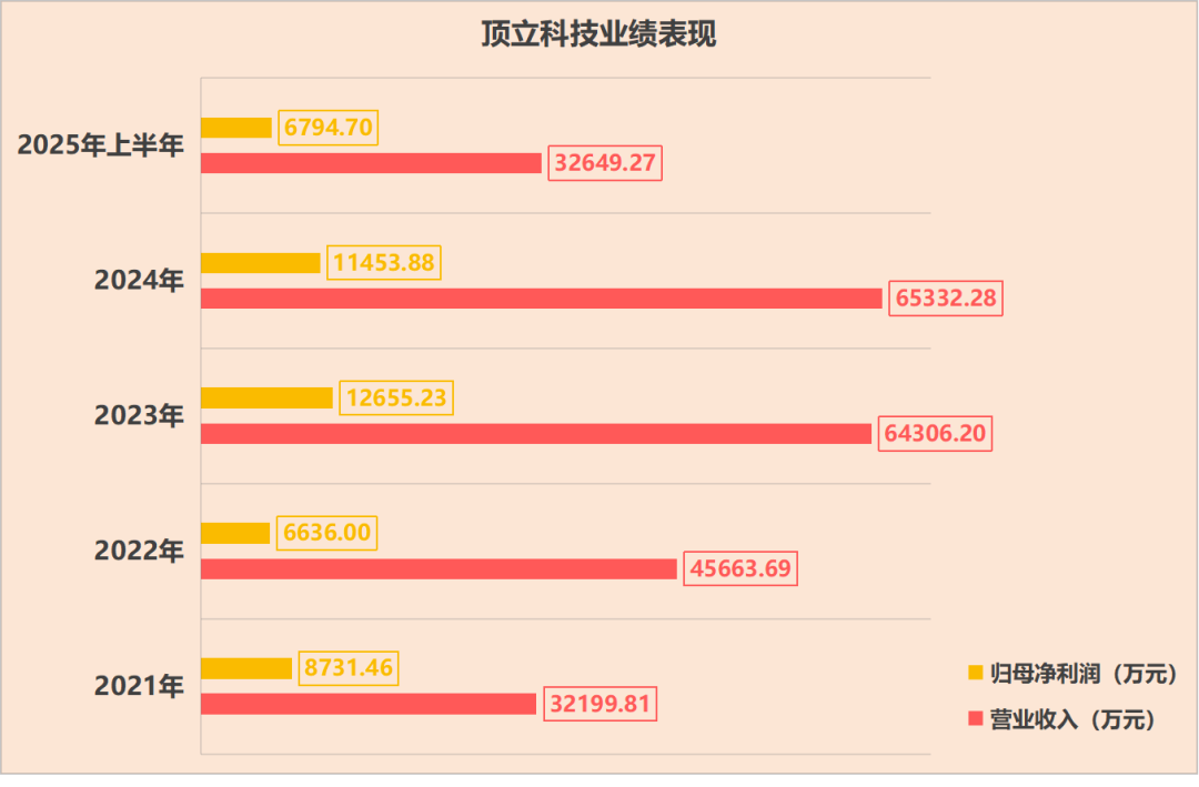 2025年上半年,頂立科技實(shí)現(xiàn)營(yíng)業(yè)收入3.26億元,同比增長(zhǎng)1.65%;歸母凈利潤(rùn)0.68億元,同比增長(zhǎng)3.42%。