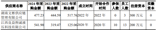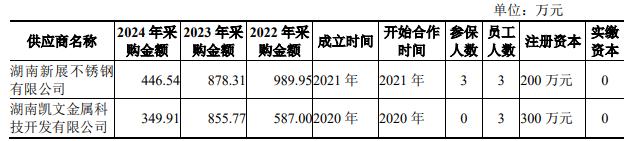 二詢顯示,部分原材料供應(yīng)商成立當(dāng)年即與公司合作,且實(shí)繳資本為0元、參保人數(shù)較少。