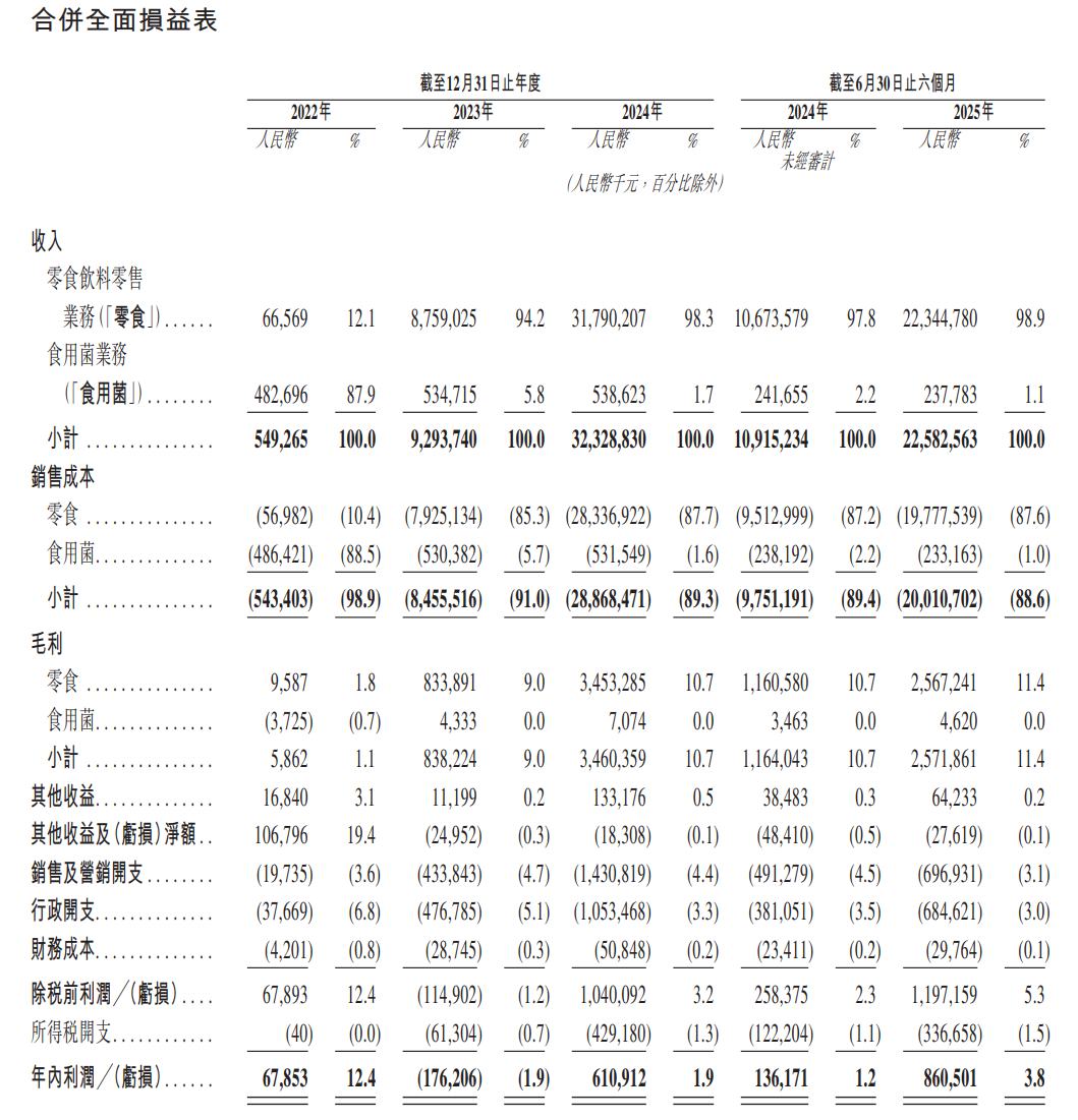 財務方面,于2022年度、2023年度、2024年及2025年截至6月30日止六個月,公司實現收入分別約為5.49億元、92.94億元、323.29億元、225.83億元人民幣;同期,年/期內利潤分別約為6785.3萬元、-1.76億元、6.11億元、8.61億元人民幣。