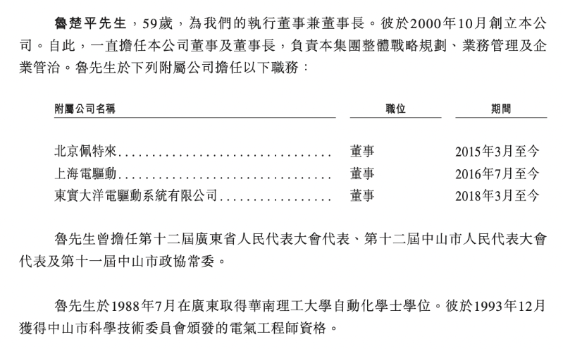 資料顯示,魯楚平,59歲,為公司執(zhí)行董事兼董事長(zhǎng)。其于2000年10月創(chuàng)立公司。自此,一直擔(dān)任公司董事及董事長(zhǎng),負(fù)責(zé)集團(tuán)整體戰(zhàn)略規(guī)劃、業(yè)務(wù)管理及企業(yè)管治。