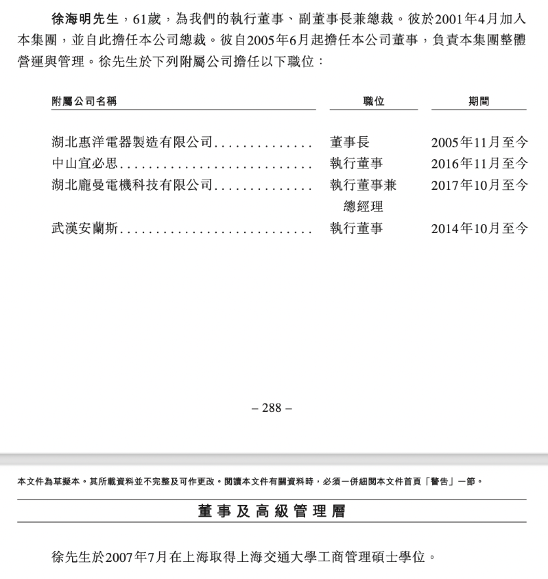 另外,徐海明,61歲,為公司執(zhí)行董事、副董事長(zhǎng)兼總裁。其1982年起在武漢鐵路分局工作,1992年任職于廣州先導(dǎo)技術(shù)工程有限公司擔(dān)任總經(jīng)理。于2001年4月加入集團(tuán),并自此擔(dān)任公司總裁。其自2005年6月起擔(dān)任公司董事,負(fù)責(zé)集團(tuán)整體營(yíng)運(yùn)與管理。
