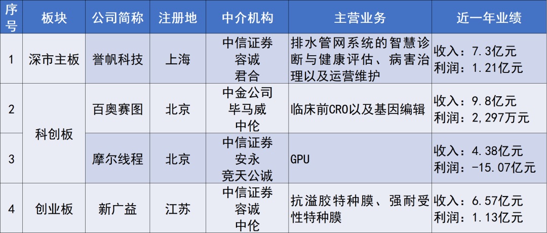 4家企業(yè)上會全部通過審核