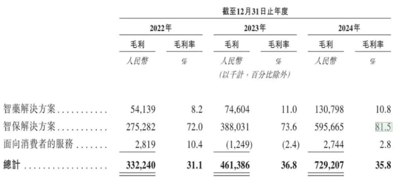 而公司的毛利率主要依靠智保解決方案拉動,該業(yè)務各期毛利率分別為72.0%、73.6%及81.5%。