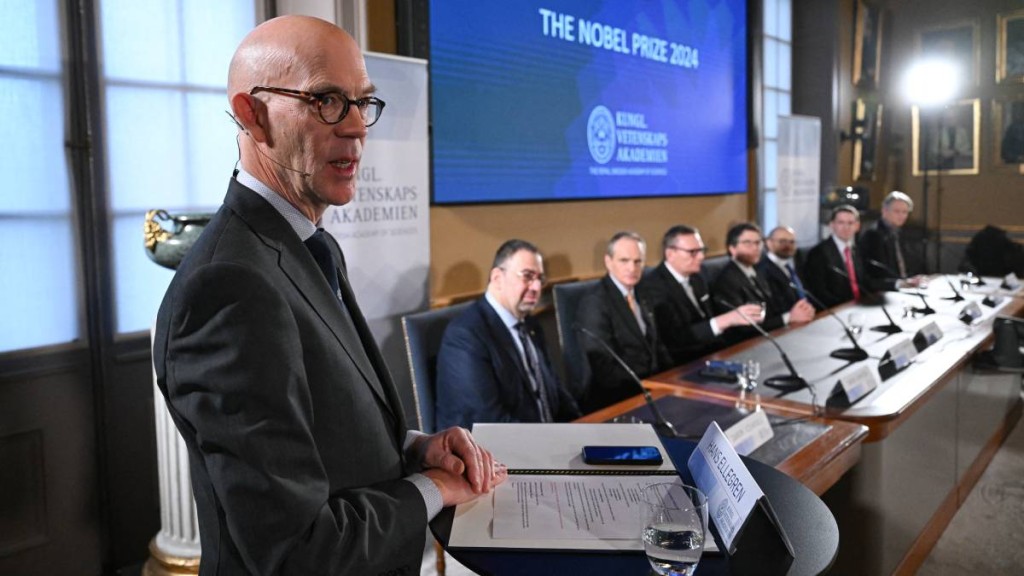 ▲負責頒發(fā)諾貝爾物理、化學及經濟獎的瑞典皇家科學院秘書長艾利格倫。法新社
