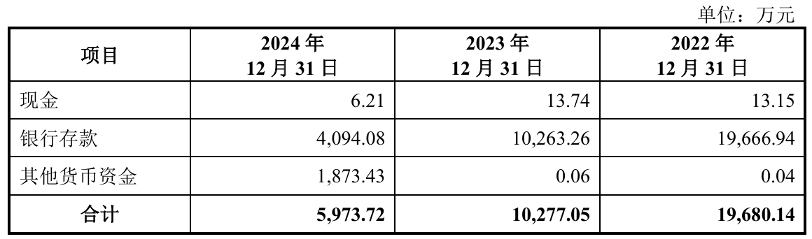 從現(xiàn)金角度看,引入外部投資者讓鈳銳鍶獲得了大額資金。2022年末,其貨幣資金達(dá)1.97億元;2023年末,因自有生產(chǎn)基地建設(shè)支出,貨幣資金降至1.03億元;而到2024年末,盡管公司引入新投資,但貨幣資金反而降至不足6000萬元。