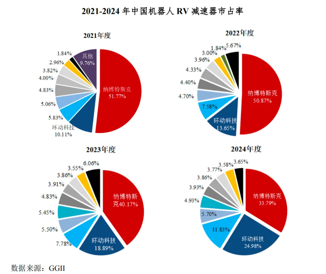 環(huán)動科技沖擊資本市場最有力的故事,無疑就是“國產(chǎn)替代”。2021年-2024年,公司在國內(nèi)RV減速器市占率從10.11%提升至24.98%,僅次于納博特斯克,同時還曾承擔(dān)了多項國家級科研項目,擁有64項專利,其中29項為發(fā)明專利。