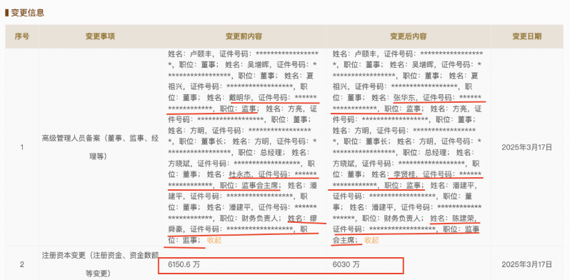 今年3月,科惠醫(yī)療工商發(fā)生變更,注冊(cè)資本由6150.6萬(wàn)元減少至6030萬(wàn)元,減幅為1.96%。同時(shí),監(jiān)事戴明華、繆舜豪退出,監(jiān)事會(huì)主席杜永杰退出,新增監(jiān)事張華東、李賢桂,新增監(jiān)事會(huì)主席陳建榮。