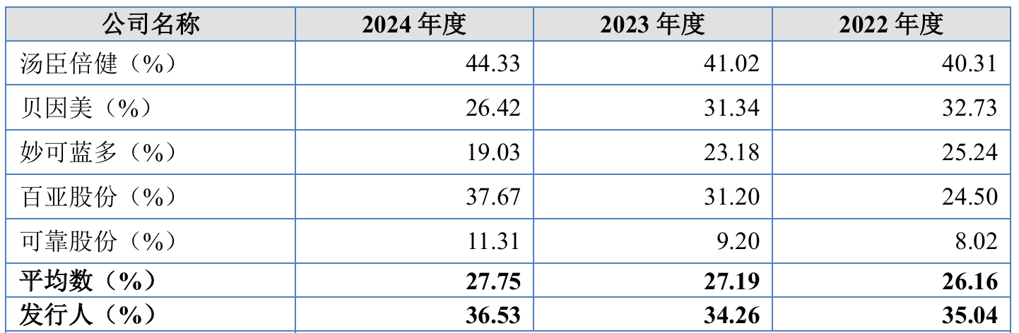 北交所在問(wèn)詢函中指出,2022年-2024年,英氏控股的嬰幼兒衛(wèi)生用品毛利率分別為28.12%、35.61%和41.66%,高于同行業(yè)可比公司平均水平(20%左右);米粉毛利率分別為68.40%、68.38%和66.56%,可比上市公司中,貝因美此類產(chǎn)品同期毛利率為11.05%、5.75%和24.69%。因此,其需要進(jìn)一步說(shuō)明毛利率與可比公司存在較大差異的原因及合理性,以及目前高毛利率是否穩(wěn)定可持續(xù)。