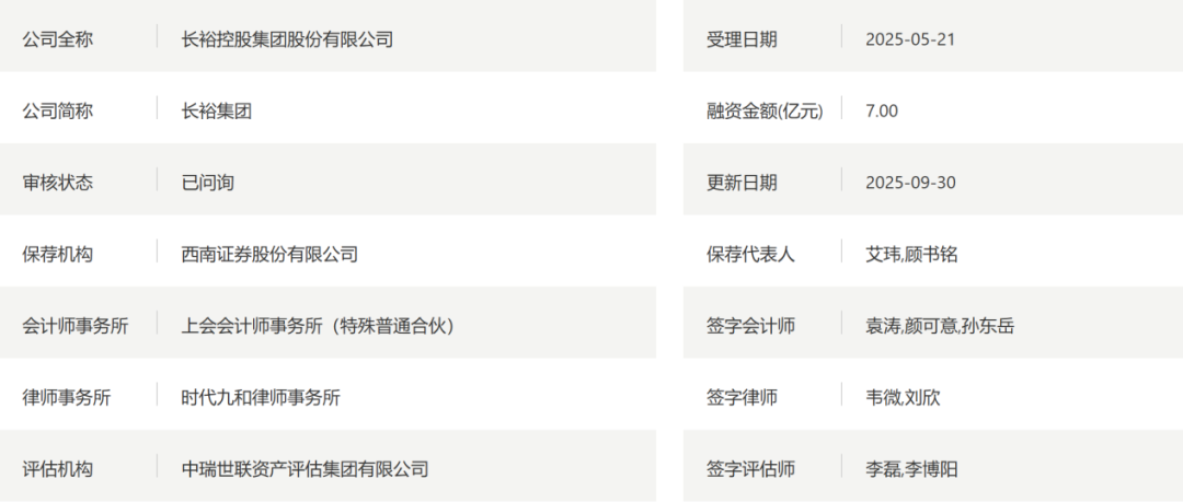 今年滬市主板受理的首個(gè)IPO申報(bào)項(xiàng)目長(zhǎng)裕集團(tuán),于9月底更新了招股說(shuō)明書(shū),繼續(xù)推進(jìn)上市進(jìn)程。截至發(fā)稿時(shí)止,審核狀態(tài)仍為“已問(wèn)詢”。