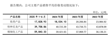 此外,特種尼龍產(chǎn)品的銷售價(jià)格也呈現(xiàn)逐步下滑態(tài)勢(shì)。2022年-2024年及2025年上半年,特種尼龍產(chǎn)品的銷售平均價(jià)格也在呈下降態(tài)勢(shì),分別為4.39萬(wàn)元/噸、4.38萬(wàn)元/噸、4.07萬(wàn)元/噸以及3.98萬(wàn)元/噸。