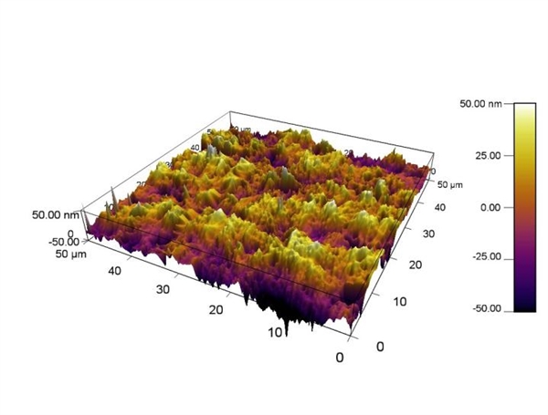 ▲中國科學(xué)院金屬研究所制備基帶的表面粗糙度(AFM標準50 x 50um)Ra=19nm