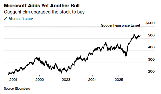 受此提振,微軟股價在盤前交易中上漲1.41%。該股年內(nèi)累計漲幅已達24%,超越納斯達克100指數(shù)約21%的漲幅。Guggenheim給出的目標價達586美元,較微軟最新收盤價存在約12%的上漲空間。