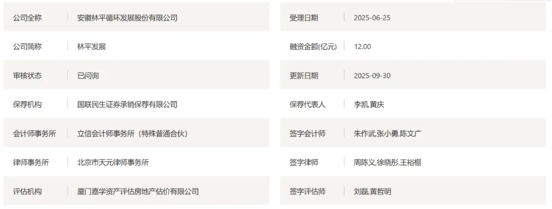 “廢紙?zhí)越稹钡陌不樟制窖h(huán)發(fā)展股份有限公司(下稱“林平發(fā)展”)選擇沖刺滬市主板。今年6月,其IPO申請獲上交所受理,并于7月進(jìn)入問詢階段。9月底,公司更新的招股說明書顯示,林平發(fā)展擬公開發(fā)行不超過1885.37萬股,募集資金12億元。