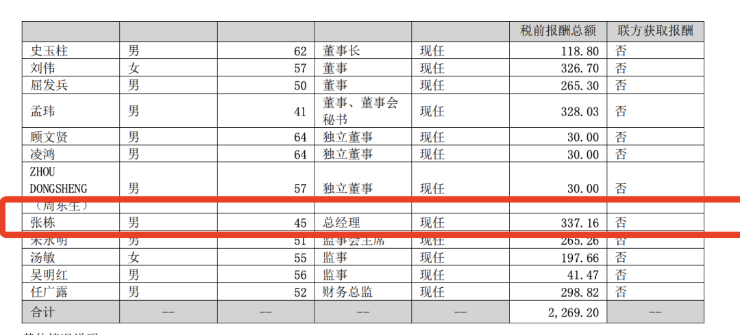 張棟年薪337萬元,高過史玉柱劉偉將再次接任總經(jīng)理
