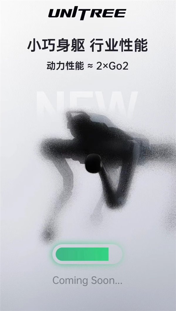 海報(bào)中的產(chǎn)品雖然模糊化處理,但從輪廓可以清晰辨認(rèn),這款新品將是四足機(jī)器人,動(dòng)力性能約為Go2兩倍。