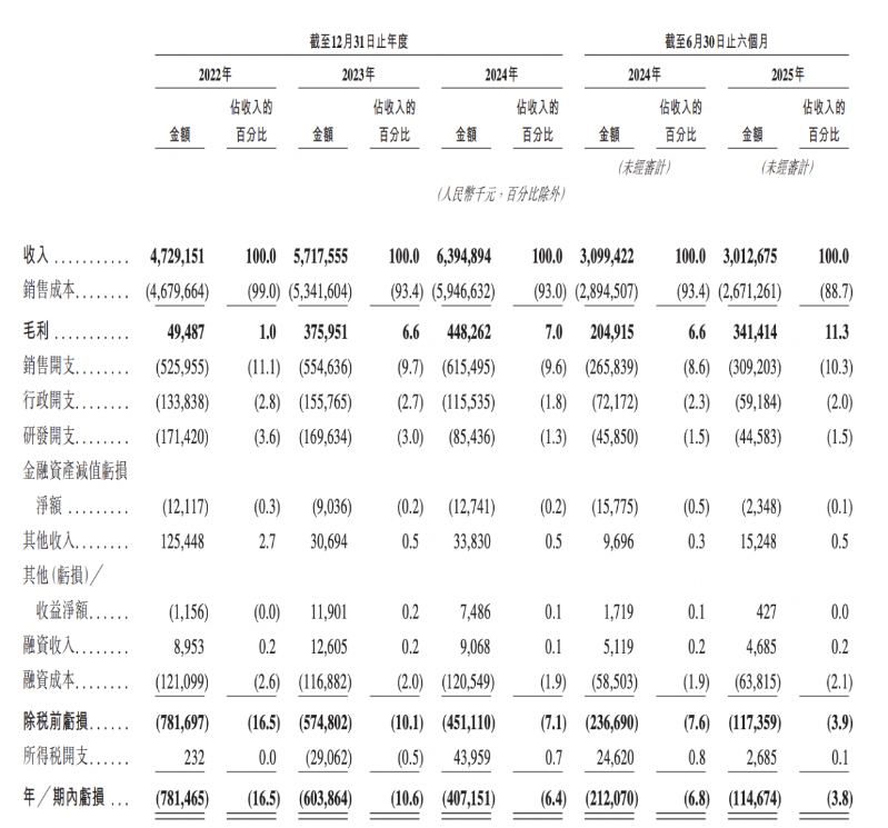 2022年至2024年,享道出行收入分別為47.29億元、57.18億元、63.95億元;期內(nèi)虧損分別為7.81億元、6.04億元、4.07億元;毛利率分別為1%、6.6%、7%。