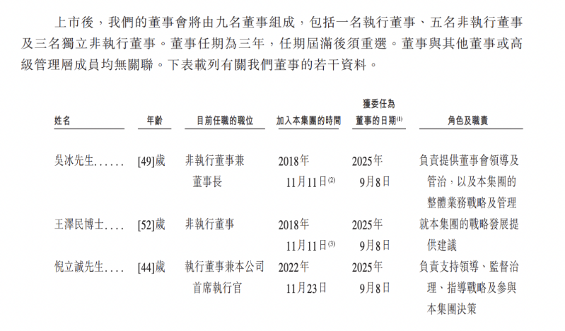 公開(kāi)資料顯示,倪立誠(chéng),44歲,為執(zhí)行董事兼公司首席執(zhí)行官。其于2022年11月23日加入本公司,自2022年11月起一直擔(dān)任首席執(zhí)行官。倪立誠(chéng)于2022年11月23日獲委任為董事兼公司首席執(zhí)行官,并于2025年9月8日調(diào)任為執(zhí)行董事。他主要負(fù)責(zé)支持領(lǐng)導(dǎo)、監(jiān)督治理、指導(dǎo)戰(zhàn)略及參與集團(tuán)決策。