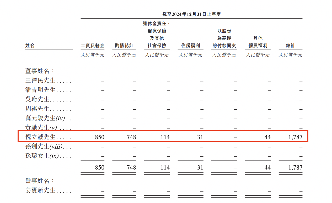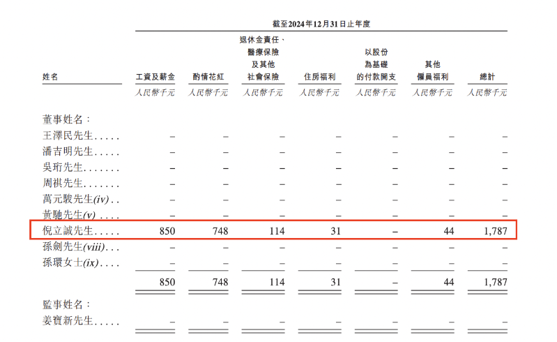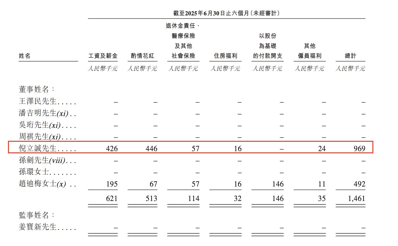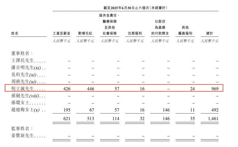 薪酬方面,2023年、2024年及2025年上半年,倪立誠(chéng)薪酬分別為207.7萬(wàn)元、178.8萬(wàn)元、96.9萬(wàn)元。