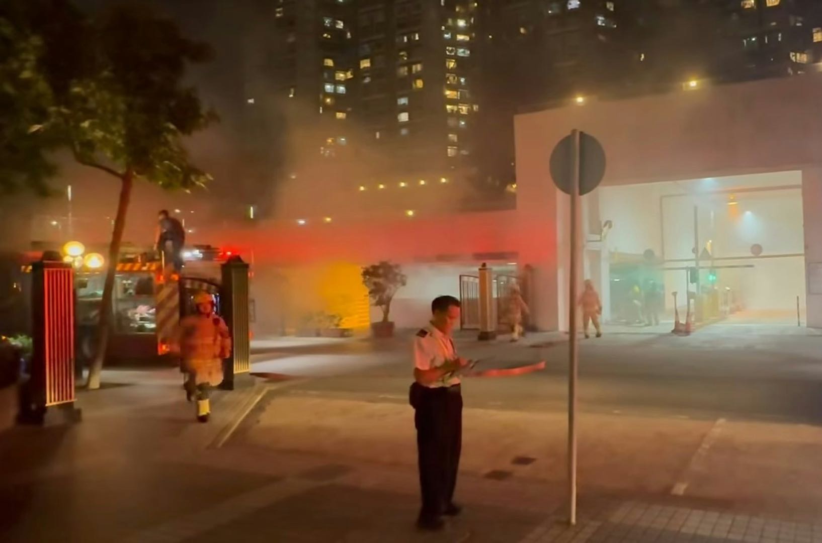 網(wǎng)絡(luò)流傳的視頻顯示,觀塘麗港城第四期停車場充斥著燃燒產(chǎn)生的濃煙,消防員在車上覆蓋了滅火毯,同時在一旁拉好水喉戒備,以防火焰死灰復(fù)燃。