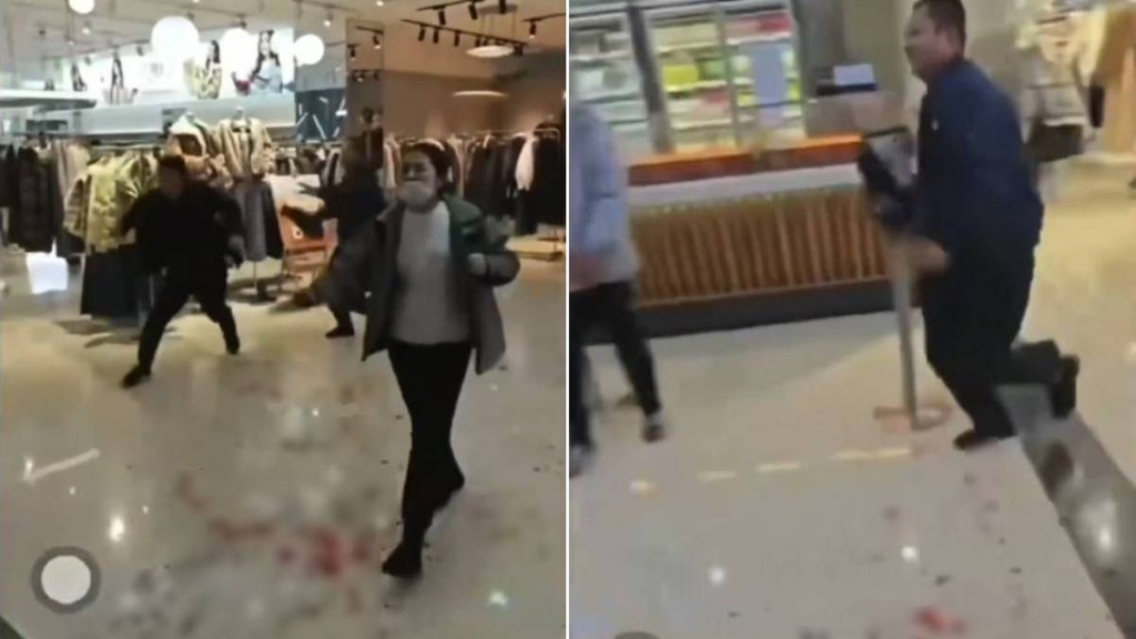 ▲河南許昌胖東來2日發(fā)生襲擊事件,有夫妻被人追打至一地鮮血。X