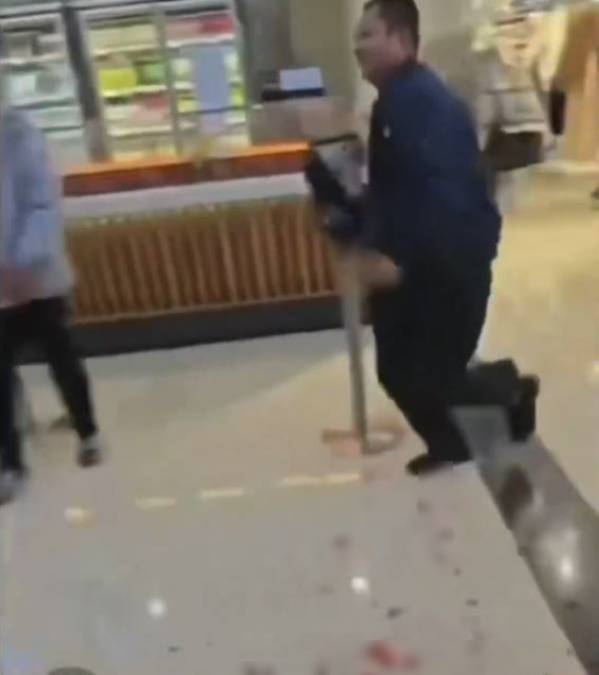 河南許昌市知名超市胖東來,周日下午發(fā)生追斬案,有夫妻因糾紛被1名男子追襲,導致滿地鮮血。疑犯迅即被疑是退伍軍人的保安制服。