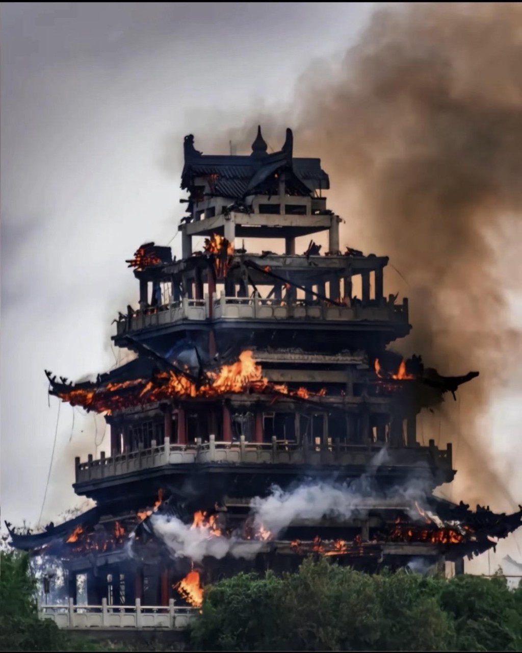 綜合媒體報道及網(wǎng)傳影片,大火發(fā)生于12日11時24分,三層木結(jié)構(gòu)的文昌閣陷于火海,升起濃濃黑煙。大火過后,文昌閣僅燒剩水泥框架,事故中無人傷亡,消防正調(diào)查起火原因。