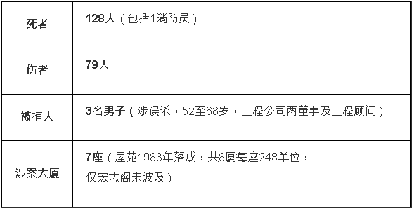 【06:38】消防處最新消息,死亡人數(shù)增至94人,76人受傷,包括11名消防員。