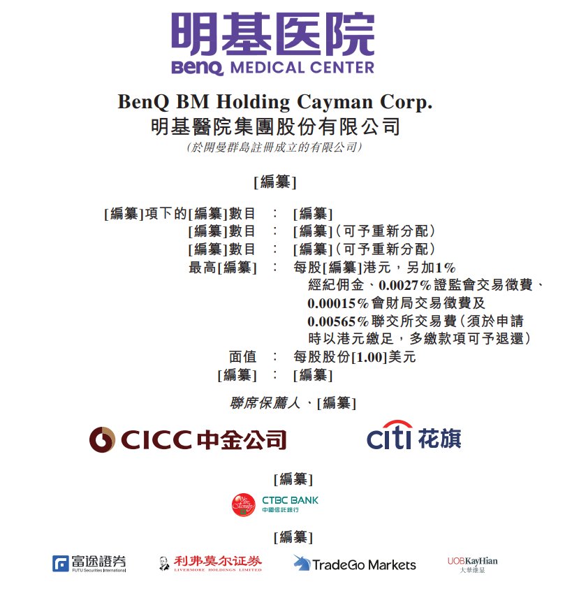 據(jù)港交所12月9日披露,明基醫(yī)院集團股份有限公司(簡稱:明基醫(yī)院)通過港交所主板上市聆訊,中金公司、花旗為聯(lián)席保薦人。