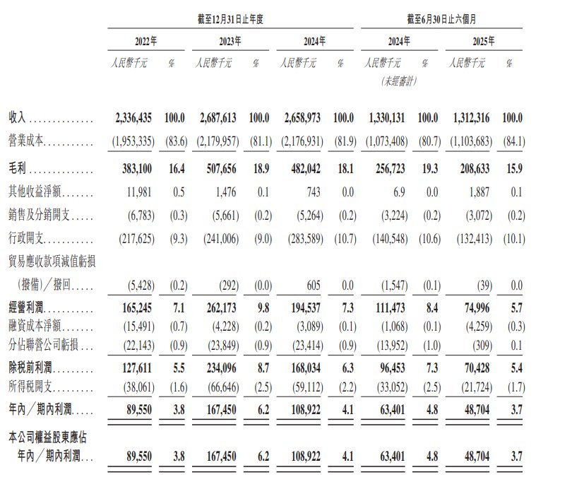 財務方面,于2022年度、2023年度、2024年度、2024年及2025年截至6月30日止六個月,明基醫(yī)院實現(xiàn)收入分別約為23.36億元、26.88億元、26.59億元、13.30億元、13.12億元人民幣;同期,年/期內(nèi)利潤為8955萬元、約1.67億元、約1.09億元、6340.1萬元、4870.4萬元人民幣。