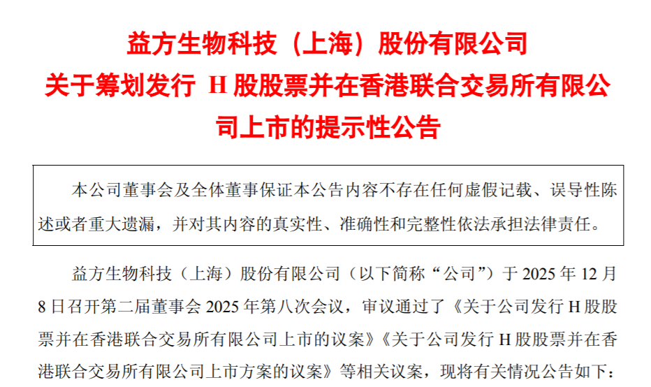 12月9日,益方生物科技(上海)股份有限公司(以下簡(jiǎn)稱“益方生物”)發(fā)布公告稱,為進(jìn)一步提高公司的資本實(shí)力和綜合競(jìng)爭(zhēng)力,深入推進(jìn)公司發(fā)展戰(zhàn)略,更好利用國際資本市場(chǎng)的多元化融資渠道,公司擬于境外發(fā)行股份(H股),并申請(qǐng)?jiān)诟劢凰靼鍜炫粕鲜小?/p>