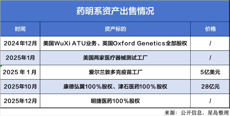 最近的一次就在12月3日。高瓴資本方面透露,已完成對(duì)藥明康德旗下明捷醫(yī)藥的全資收購(gòu),這已是短短兩個(gè)月內(nèi),藥明康德第二次拋售資產(chǎn)。