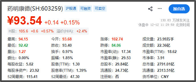 ▲藥明康德股價(jià)近況 來(lái)源:雪球