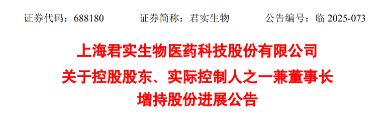 公告顯示,上海君實(shí)生物醫(yī)藥科技股份有限公司控股股東、實(shí)際控制人之一兼董事長熊俊擬自 2025 年 4 月 12 日起 12 個(gè)月內(nèi),增持公司 A 股股份及 H 股股份,合計(jì)增持金額不低于人民幣 1 億元,其中 A 股增持金額不低于人民幣 5000 萬元。