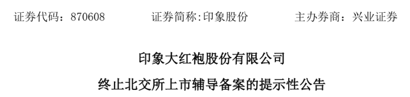 ▲印象股份宣布終止北交所輔導(dǎo)上市